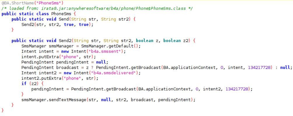 The arsenal of capabilities at the disposal of a typical spyware strain is both expansive and alarming. From call and SMS monitoring to location tracking, keylogging, media capture, and unauthorized access to contacts and emails, the potential for intrusion knows no bounds. In the case of “IRATA,” we shall delve into some of these capabilities, examining real malware code samples and dissecting the nefarious applications of such unauthorized access.